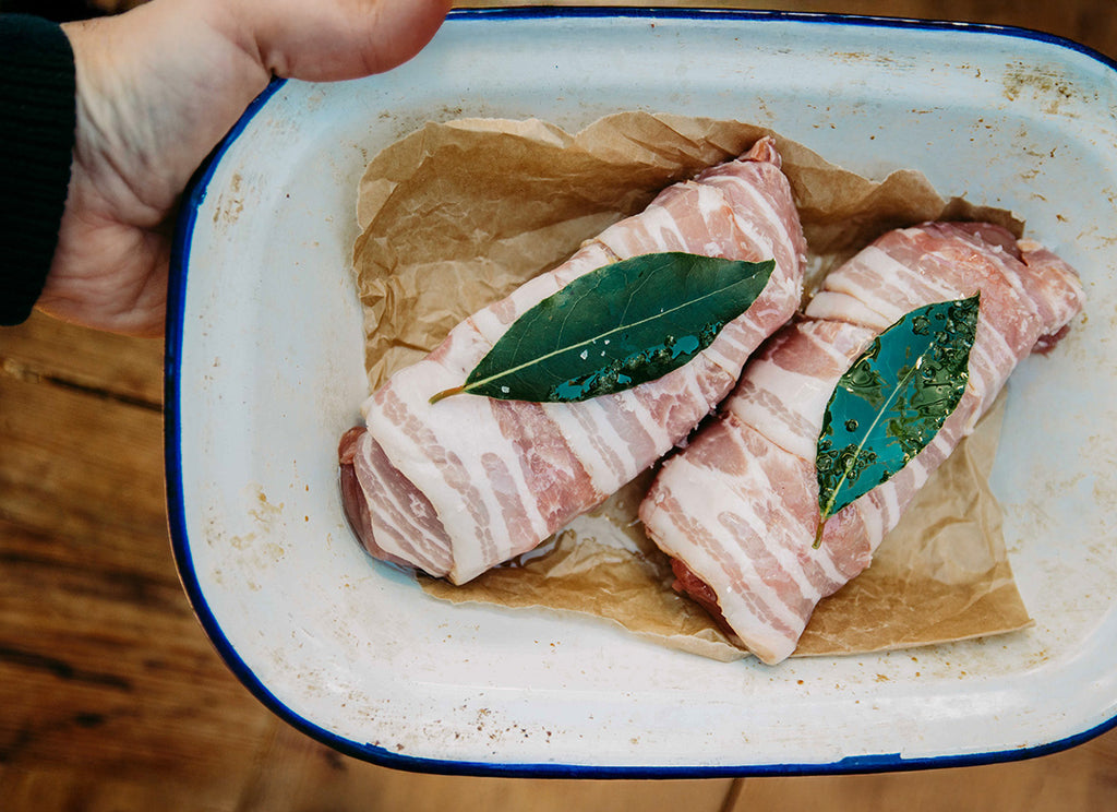 The mini game roast is the smallest of our multi game roasts. Comprises of wild boar sausagemeat and pheasant fillet both wrapped in streaky bacon.